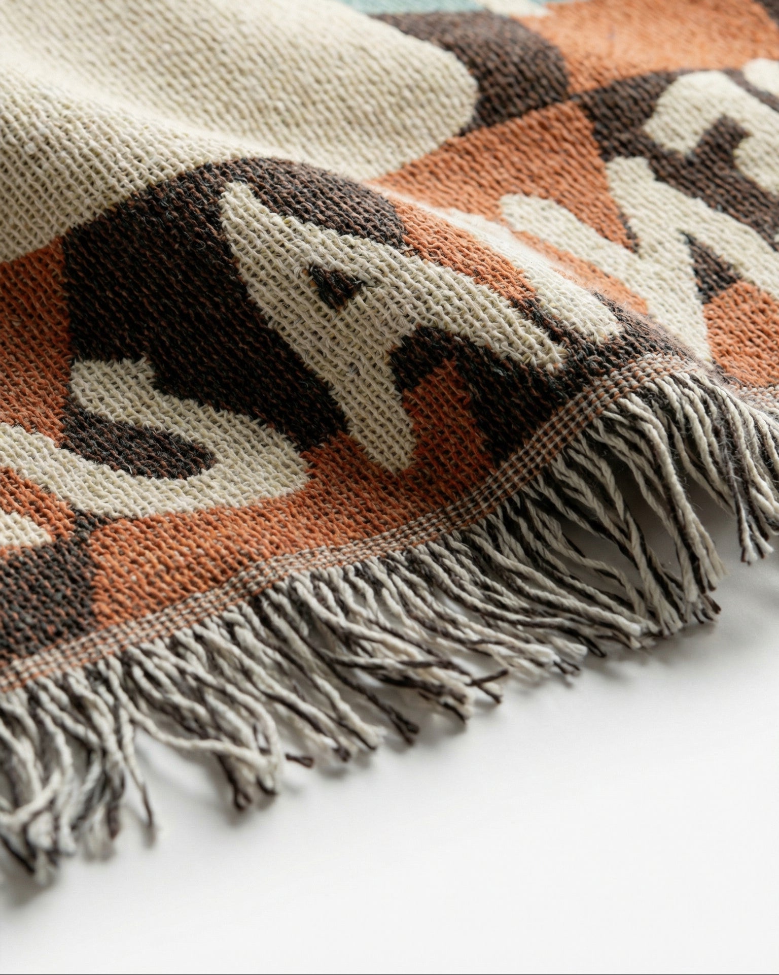 Designed as a statement textile layer for sofas, beds or curated interiors. Balanced composition and rich woven contrast.